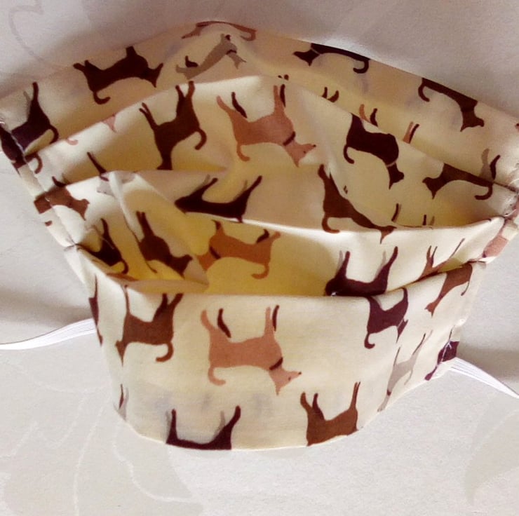 Eco friendly reusable face mask handmade in a dog print fabric, reversible with soft elastic at each side very comfortable to wear. It can be hand washed, air dried and ironed on a cool setting.