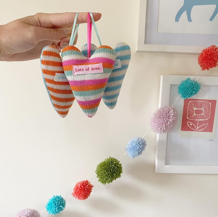 Wool lavender Heart, perfect small gift with woven 'lots of love' message.