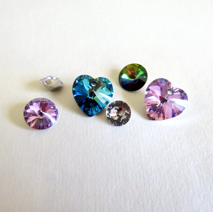 From my stash and no longer needed, these assorted crystals have pointed and foiled backs and comprise: