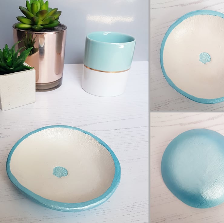 I had wanted to make ring dishes for so long, having seen some beautiful handmade dishes on social media, and just took the plunge one day when the air dry clay was out!! It was fun seeing them all drying in different bowls round my kitchen!!