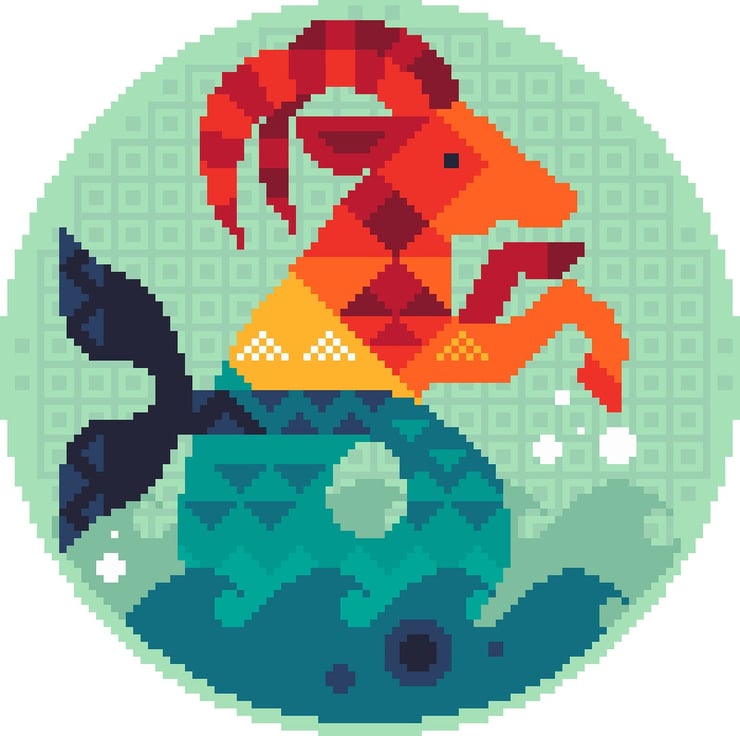 ZODIAC SERIES - Capricorn the Horned Sea Goat - Astrological Horoscope cross stitch/tapestry chart Instant download by Vivienne Powers in the modern Scandinavian style.