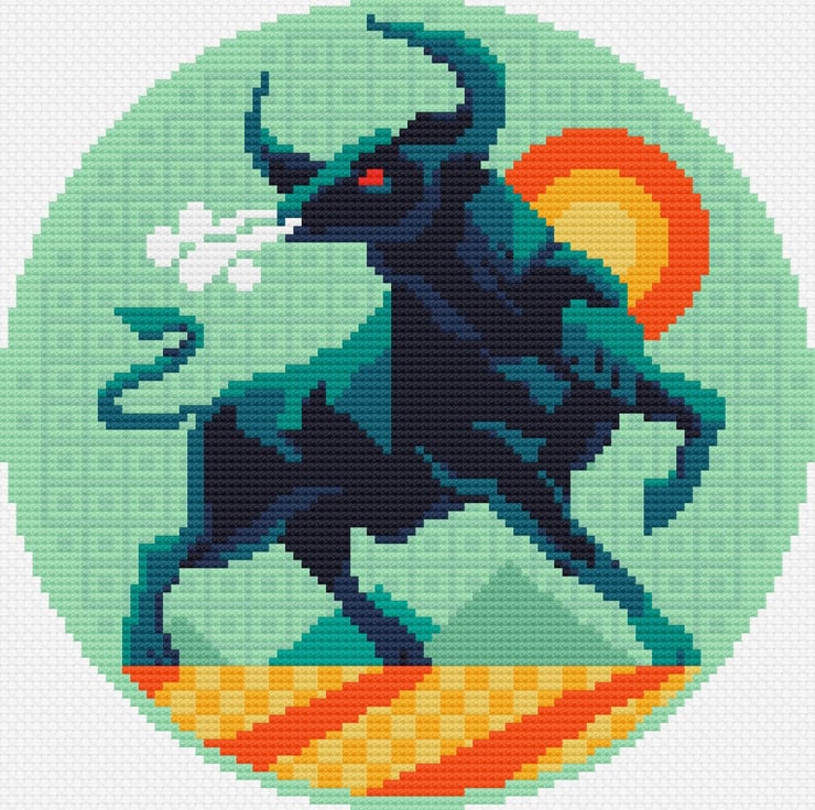 ZODIAC SERIES - Taurus the Bull - Astrological Horoscope cross stitch/tapestry chart Instant download by Vivienne Powers in the modern Scandinavian style. And designed to have the least amount of 'fiddly' bits.