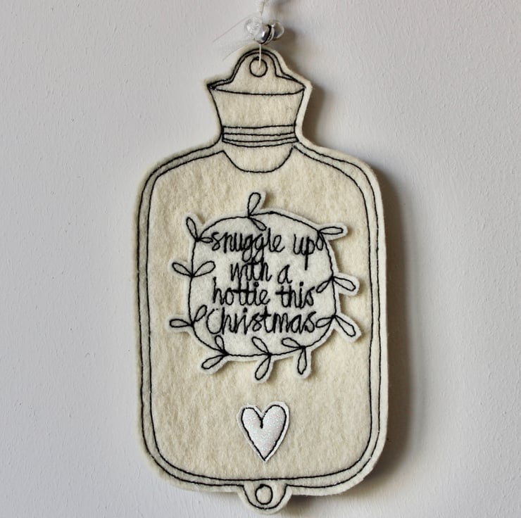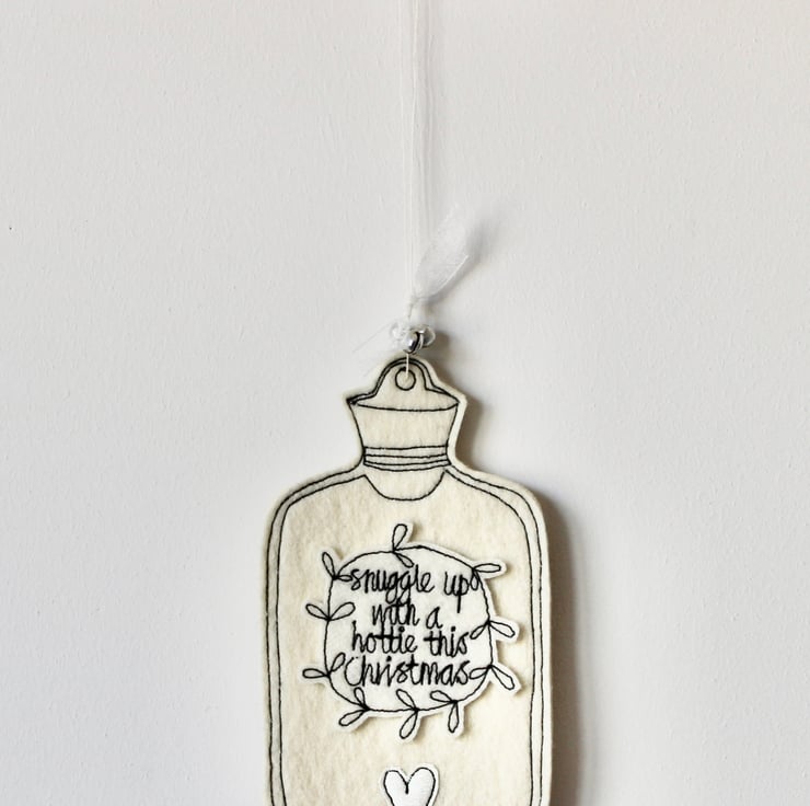 A little hot water bottle displays the words, 'snuggle up with a hottie this Christmas'.