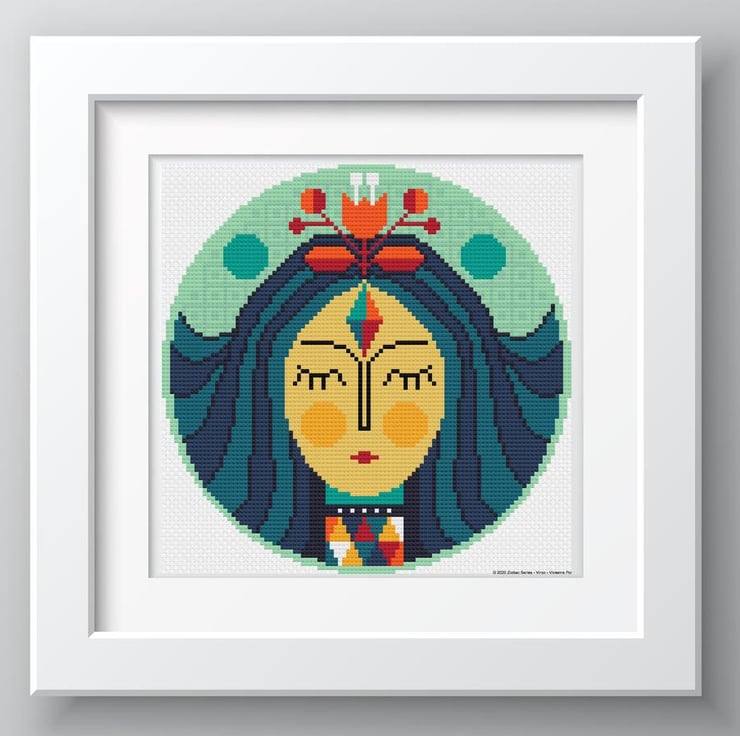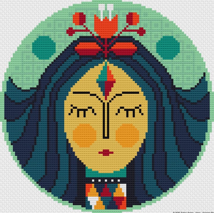 ZODIAC SERIES - Virgo Maiden Virgin - Astrological Horoscope cross stitch/tapestry chart Instant download by Vivienne Powers in the modern Scandinavian style.