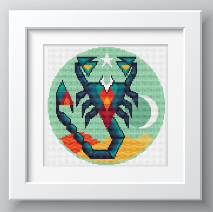 ZODIAC SERIES - Scorpio - Astrological Horoscope - Star sign cross stitch/tapestry chart Instant download by Vivienne Powers in the modern Scandinavian style. And designed to have the least amount of 'fiddly' bits.