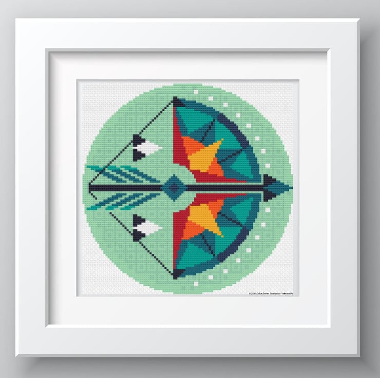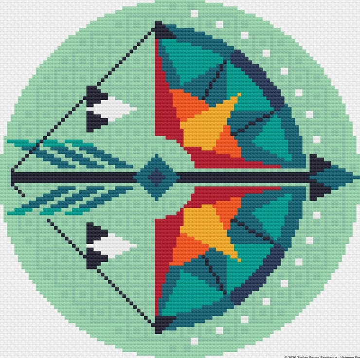 ZODIAC SERIES - Sagittarius the Archer - Astrological Horoscope cross stitch/tapestry chart Instant download by Vivienne Powers in the modern Scandinavian style. And designed to have the least amount of 'fiddly' bits.