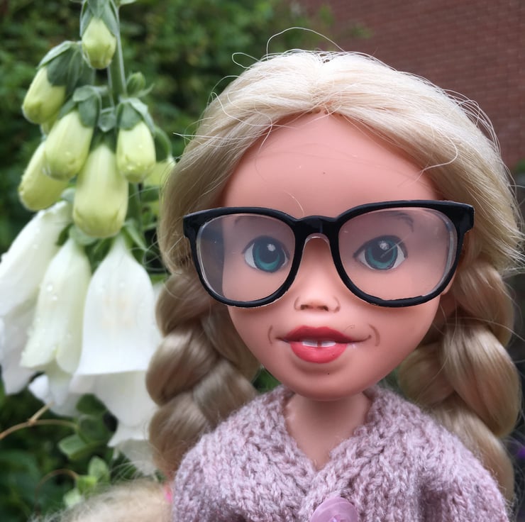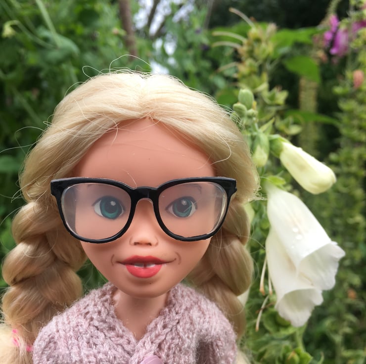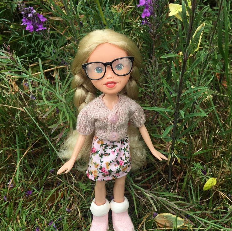Kate has enjoyed a thorough spa treatment and had her hair detangled, washed and trimmed. She has been cleaned and sterilised. Her face has been repainted In non toxic paints by hand and sealed to give her a fresh, natural look. Kate has a cute outfit, including a hand knitted cardigan in yarn and matching floral skirt and pop on and off shoes made from Silicone. She also has cute little glasses.
