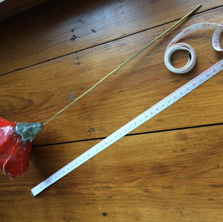 The ceramic flower head is on a long hard wire stem so it is easy to arrange both in a vase or in a bouquet. Each flower head measures approx 10 -15cm diameter, but every flower is unique so there will be a slight difference with each one.