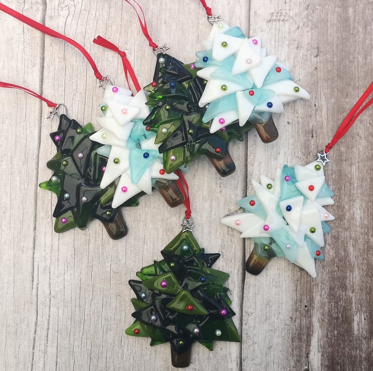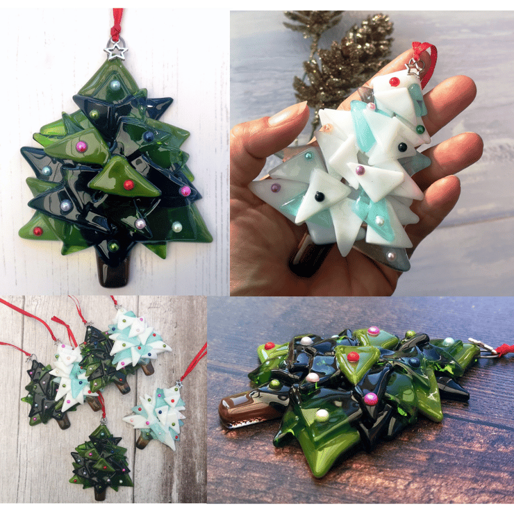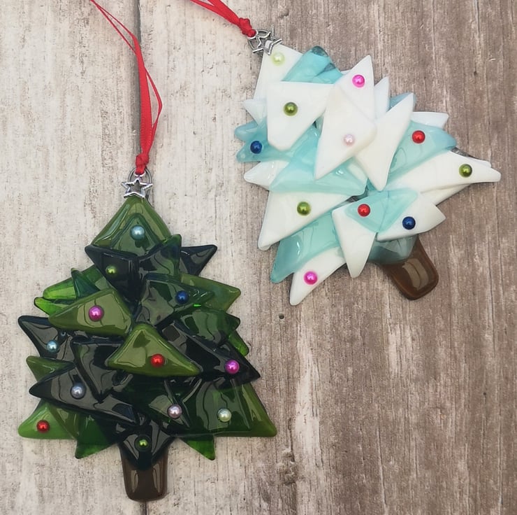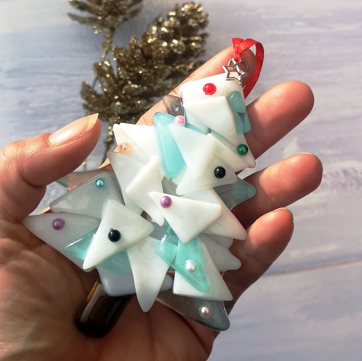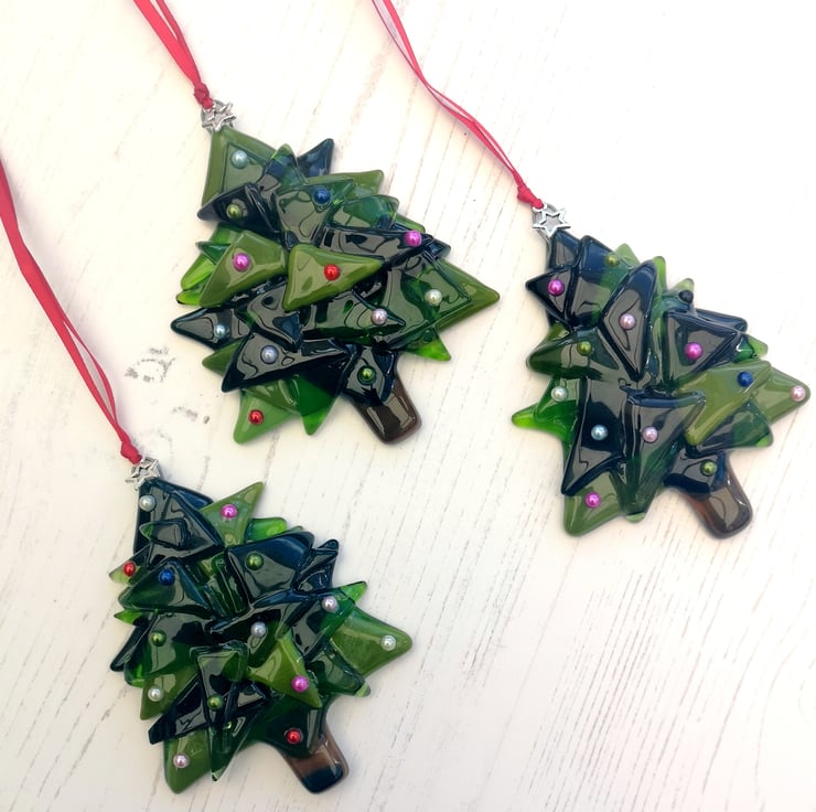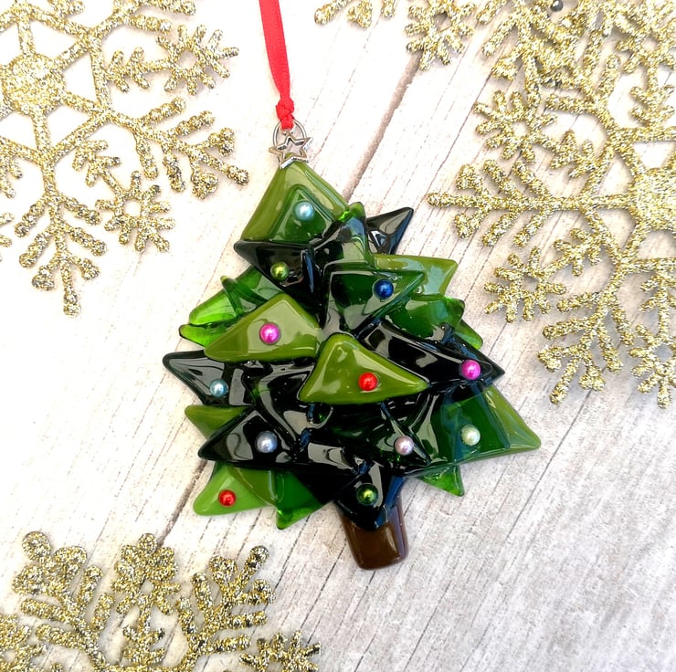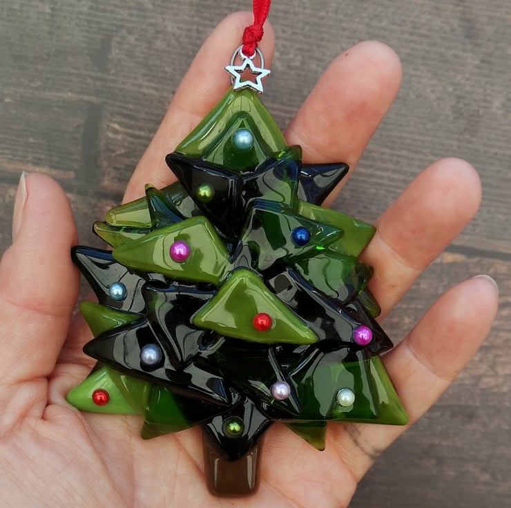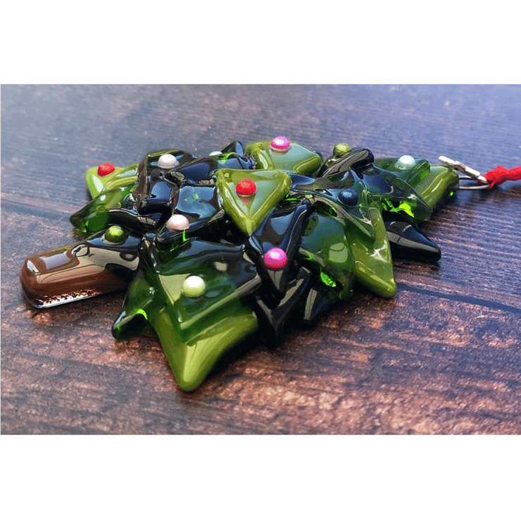 Handmade Fused Glass 3D Christmas Tree Hanging Decoration - Festive Gift