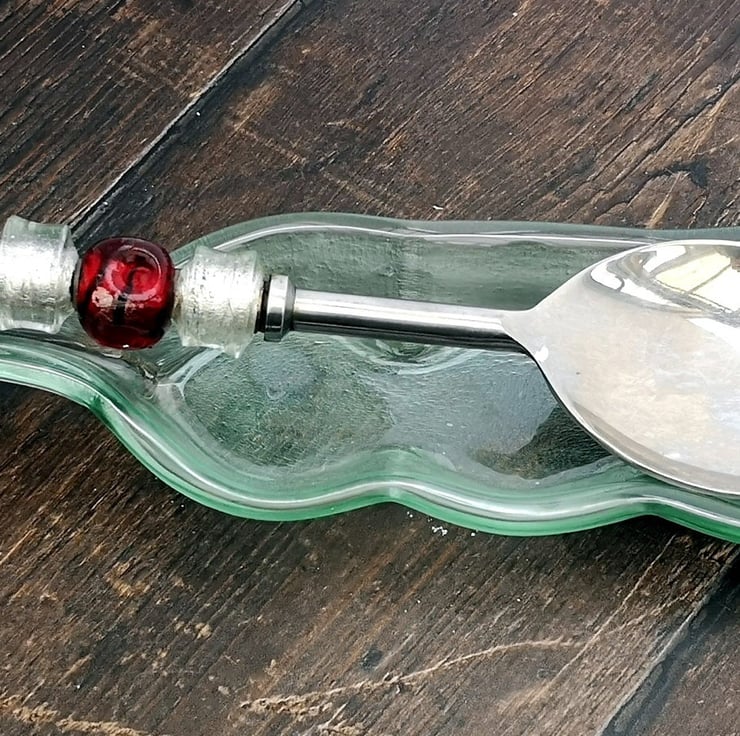 Recycled Wine Bottle Wavy Dish / Tealight Candle Holder / Spoon Rest.