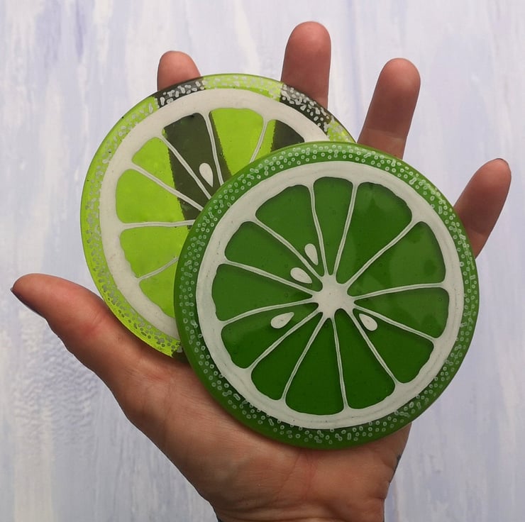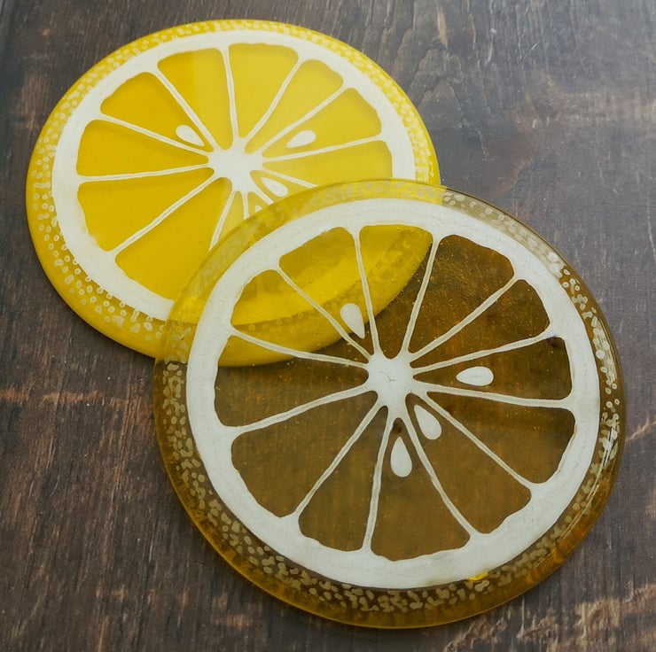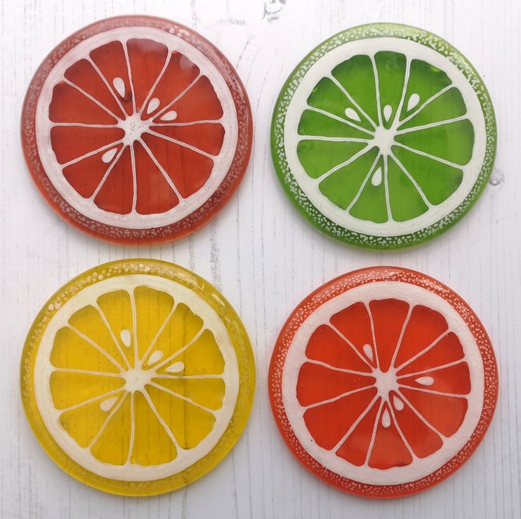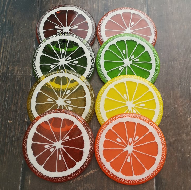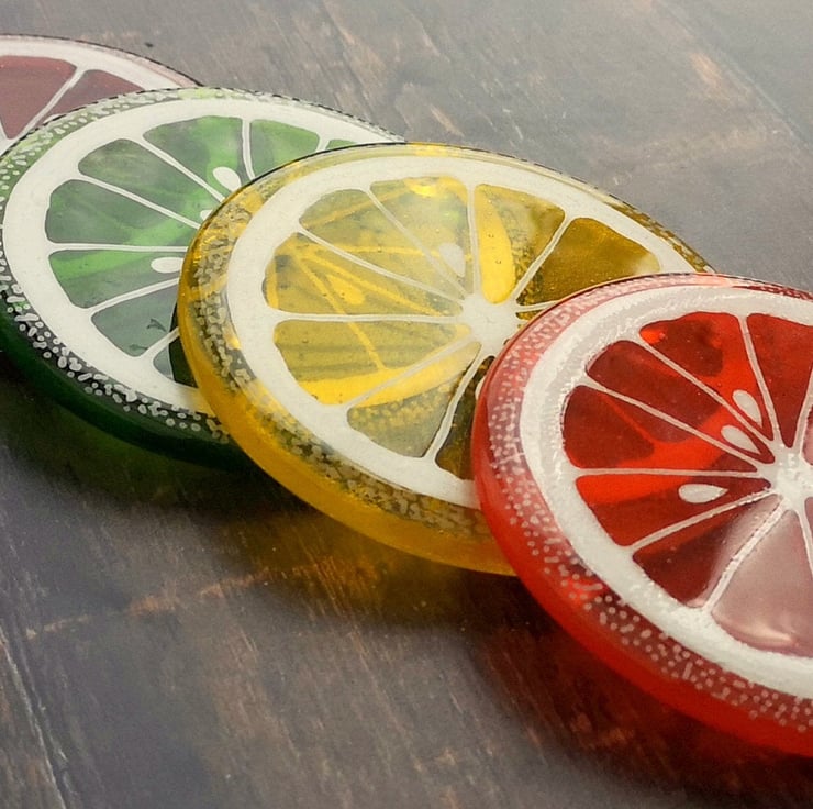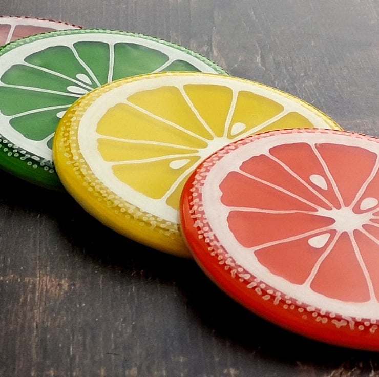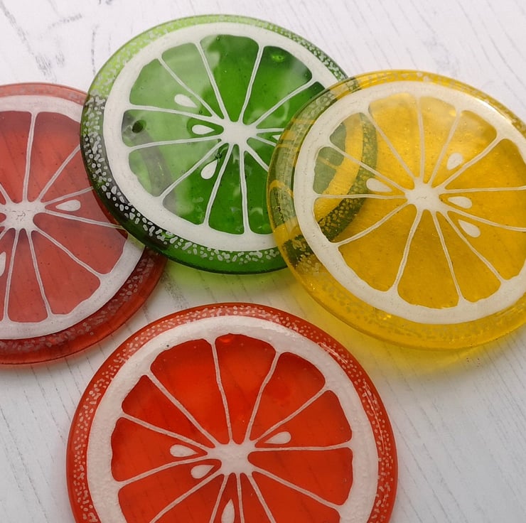 Handmade Fused Glass Fruit Slice Drinks Coaster - Citrus Fruit Table Mat - Tile