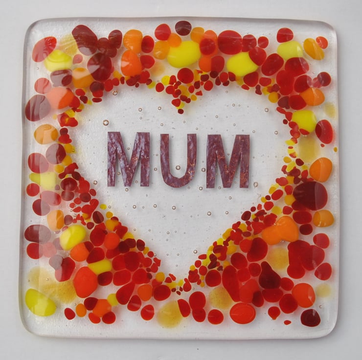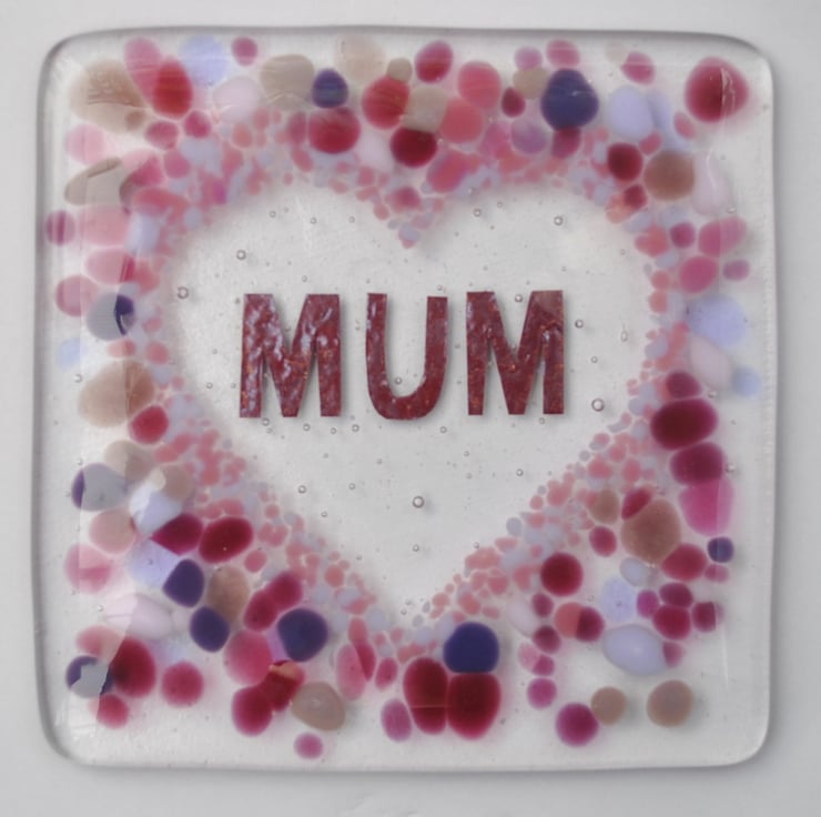 Handmade Fused Glass Mum In A Love Heart Drinks Coaster - Mother's Day Tile
