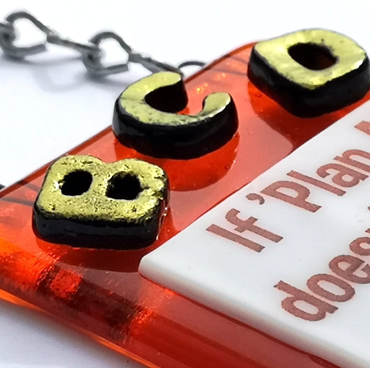 Handmade from glass that has been fused in a kiln, using only fully tested & compatible best quality art glass. The 3D letters are made from powdered glass which I turn into a clay. They are then permanently fused onto the glass base in a kiln.