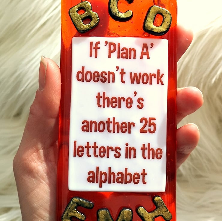 A 'If 'Plan A' doesn't work there's another 25 letters in the alphabet' suncatcher hanging picture decoration, hung with chain.
