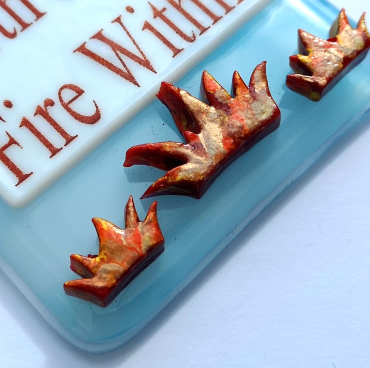 Handmade from glass that has been fused in a kiln, using only fully tested & compatible best quality art glass. The 3D flames are made from powdered glass which I turn into a clay. They are then permanently fused onto the glass base in a kiln.