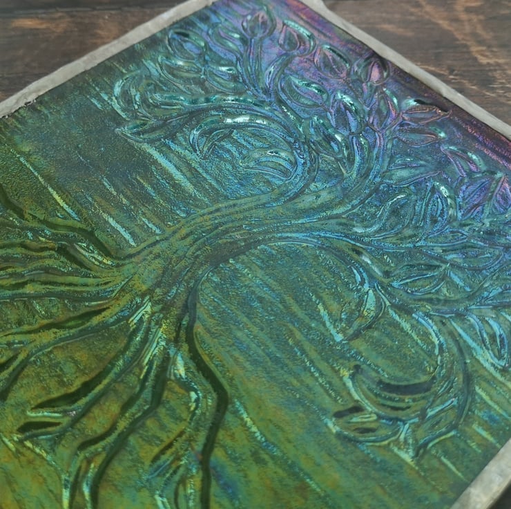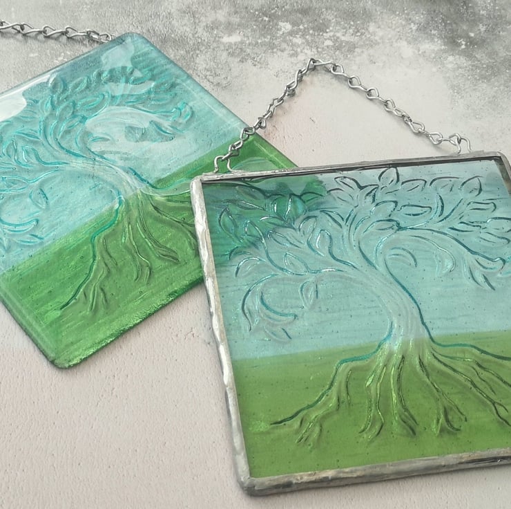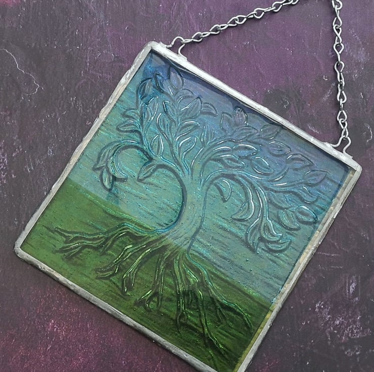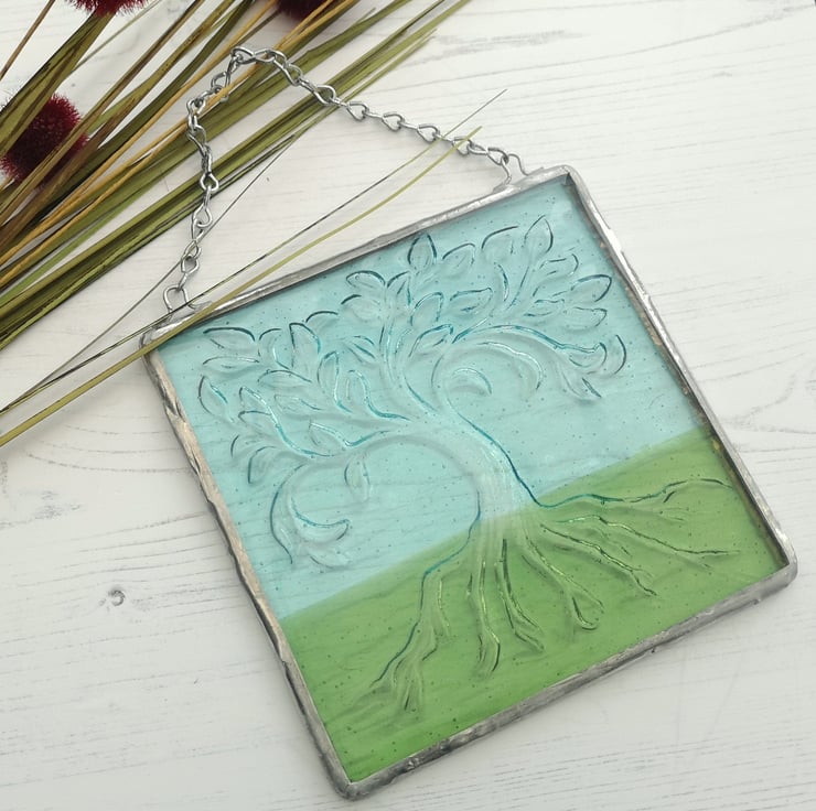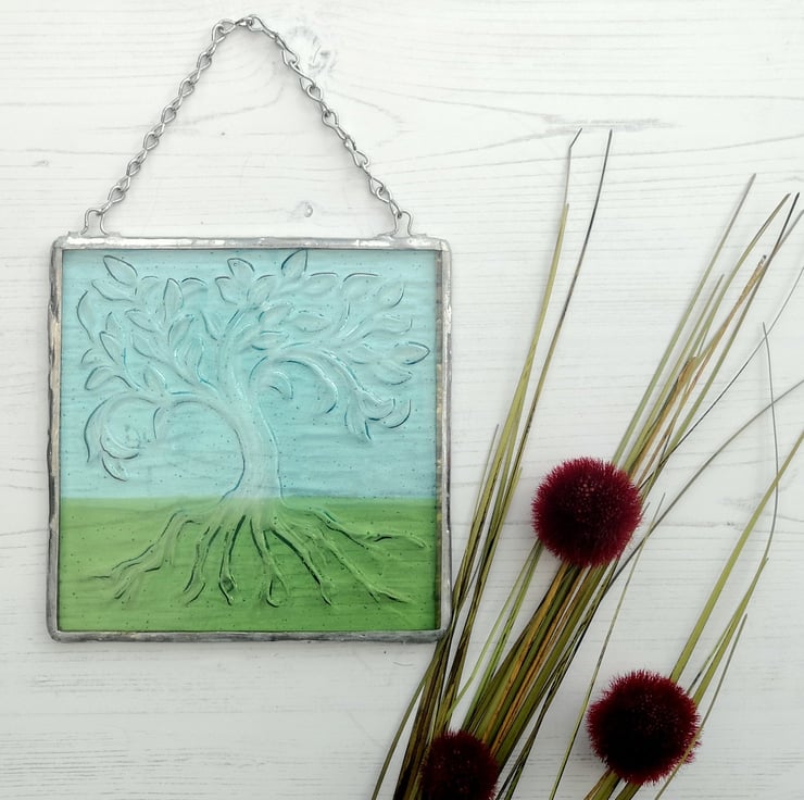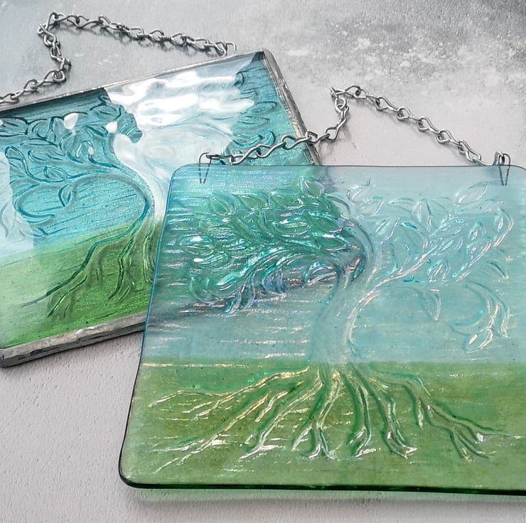 Handmade Fused Glass Tree Of Life Picture - Hanging Wall Plaque - Sun Catcher