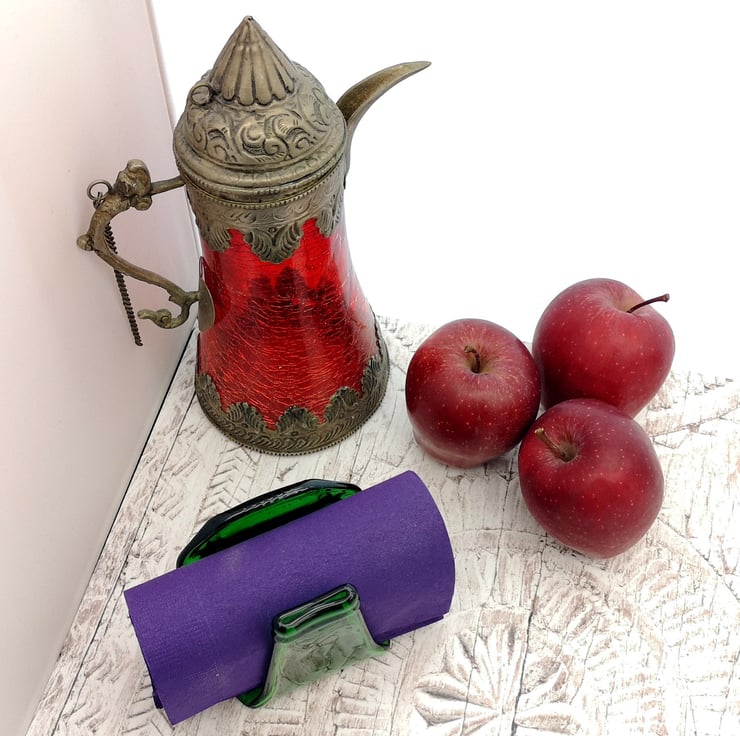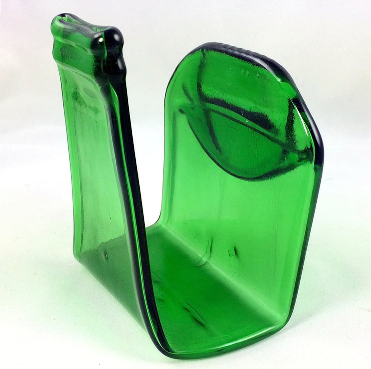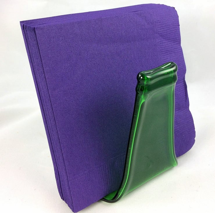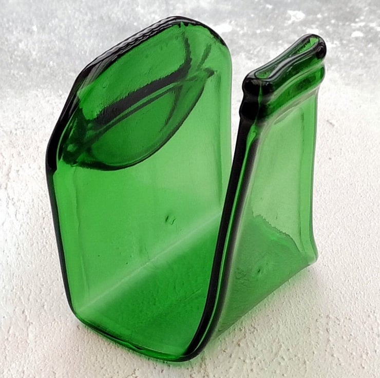 Squashed bottle, made from recycled glass that has been melted and slumped into a napkin holder. A perfect upcycling, zero waste eco gift reclaimed bottles transformed into environmentally friendly tableware.