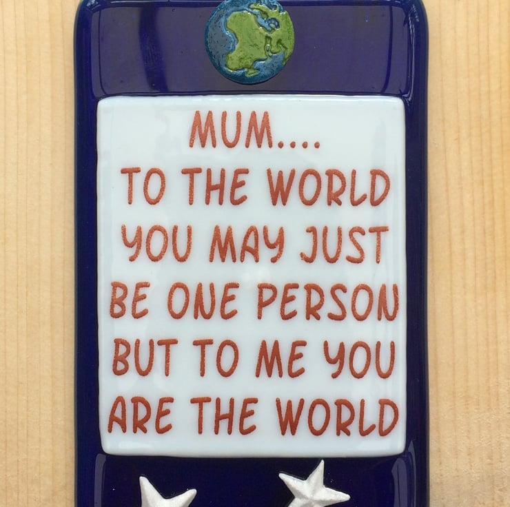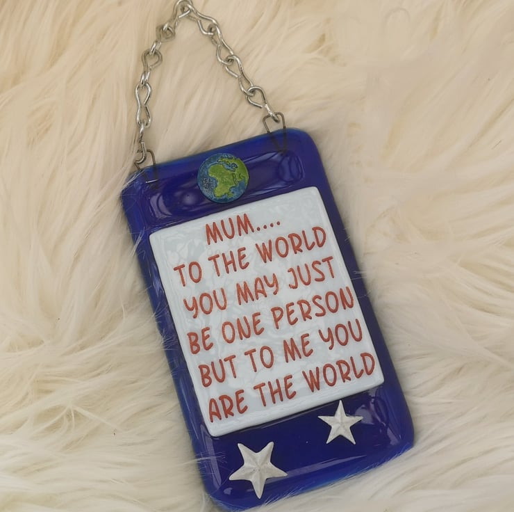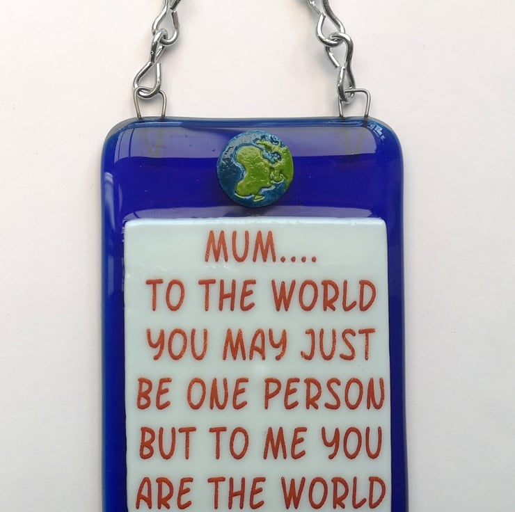 Handmade Fused Glass 'Mum You Mean The World To Me' Hanging Picture Decoration