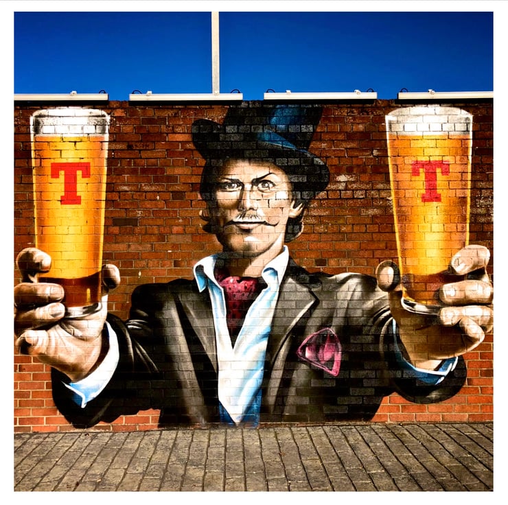 We live in Dennistoun, just around the corner from Tennents Brewery and a fantastic brick walk featuring some stunning artwork like this one. Also available is a collage of various images from the wall