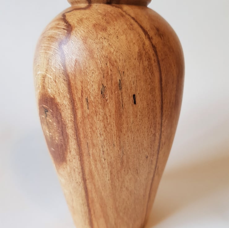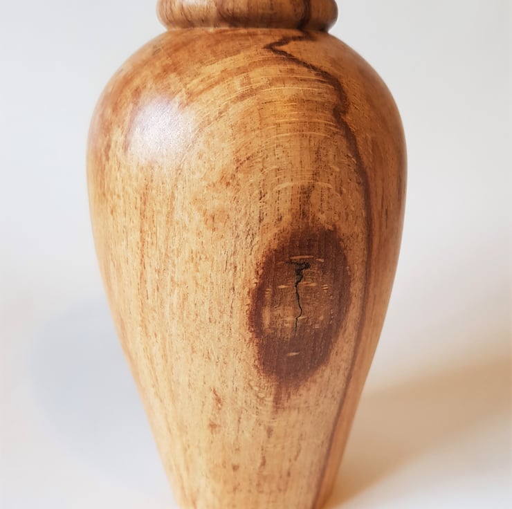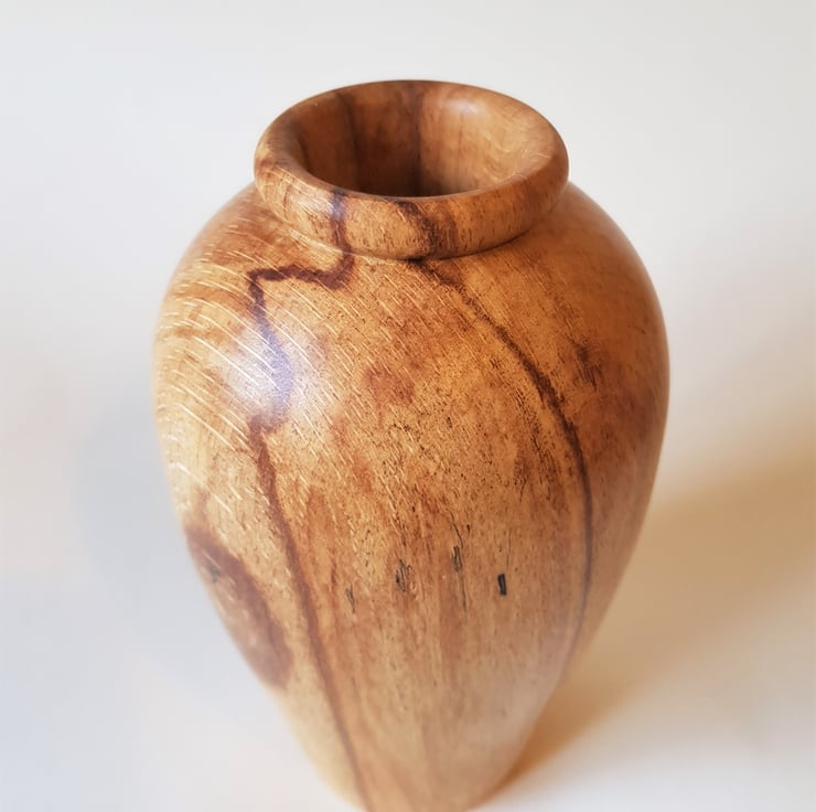 I put this piece of wood away a number of years ago as I thought it was too difficult to turn at the time, but got it out again recently and I am glad I did, its a really nice piece that turned into a lovely item. The shape shows off the spalting really well. It would make a lovely decoration for the home on its own or with some dried flowers in.