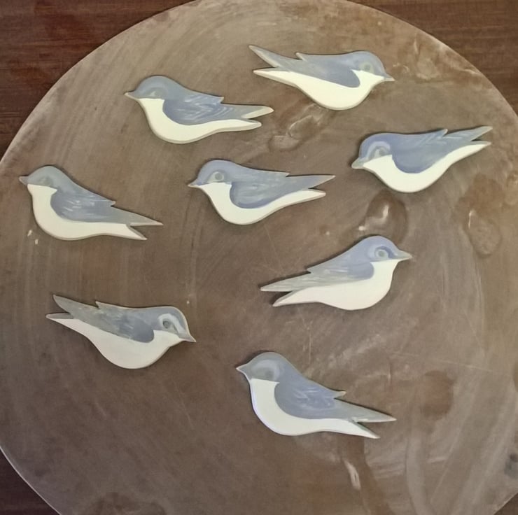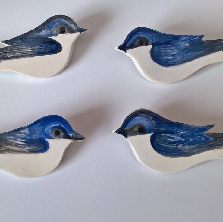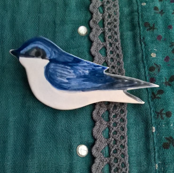 I've recently been making a series of animal and bird brooches. I've always found the natural world to be a great source of inspiration and love sketching what I see. Transforming my sketches into 3D work and showing the beauty of nature as I see it. This series of swallows show the lovely contrast of colour the bird has but also the elegant shape of the bird.