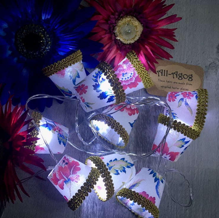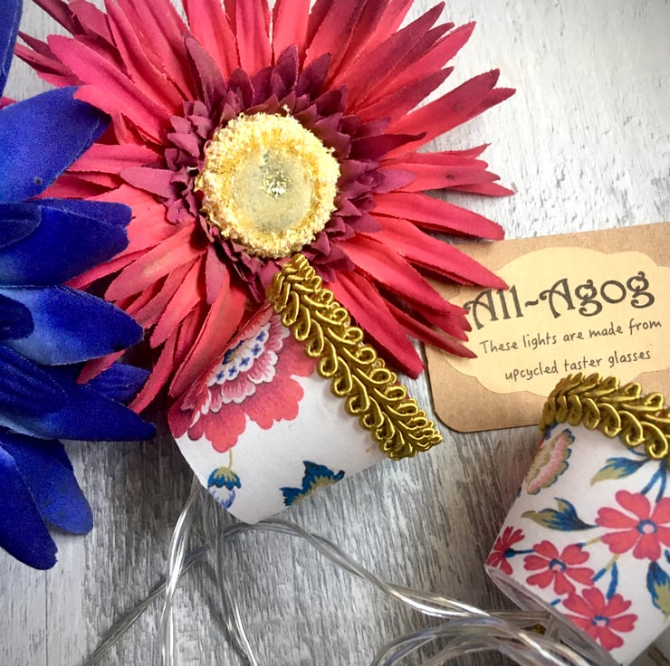 These mini lampshades have been upcycled from used plastic taster glasses.