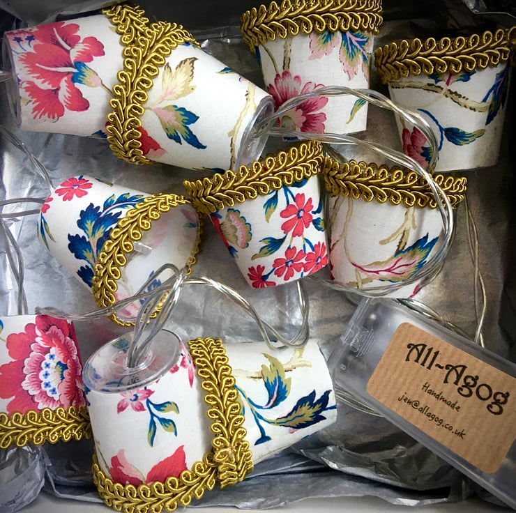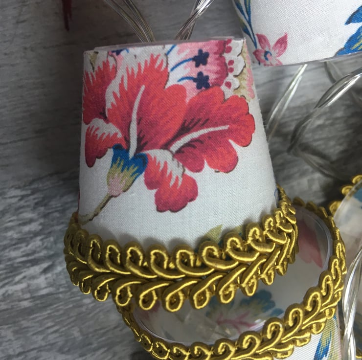 All my lights are a one of a kind combination, so if you see any fabrics you like, I also do custom lights to order, and I can even use your own special fabric, so please contact me if you would like a particular colour combination to fit with your decor, or have a specific fabric in mind. Just remember that these are mini lampshades, so the prints I use have to be mini too!