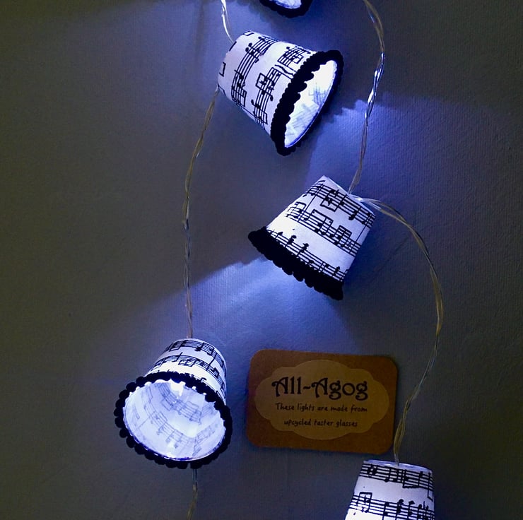 These mini lampshades have been upcycled from used plastic taster glasses.