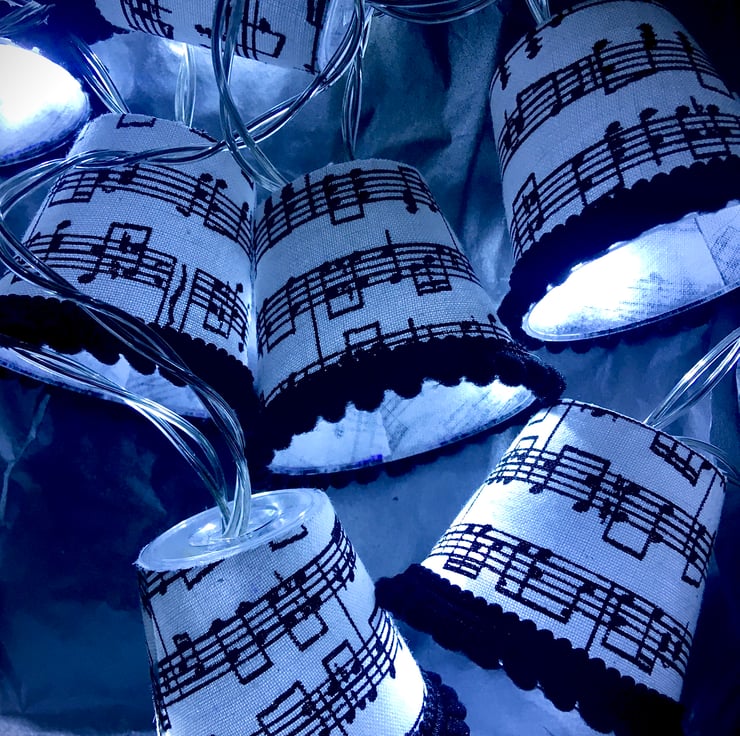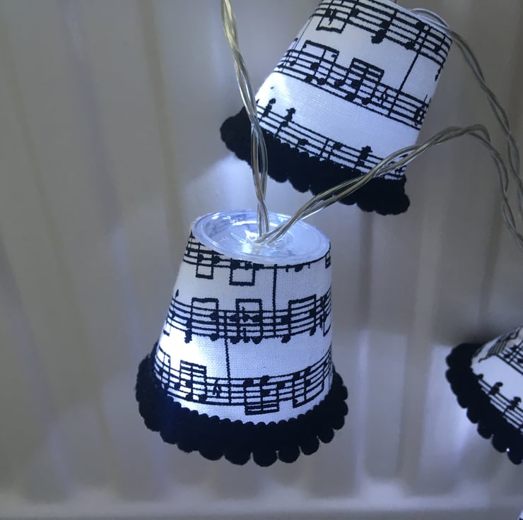 They have been covered in a gorgeous sheet music printed fabric depicting a lively tune!