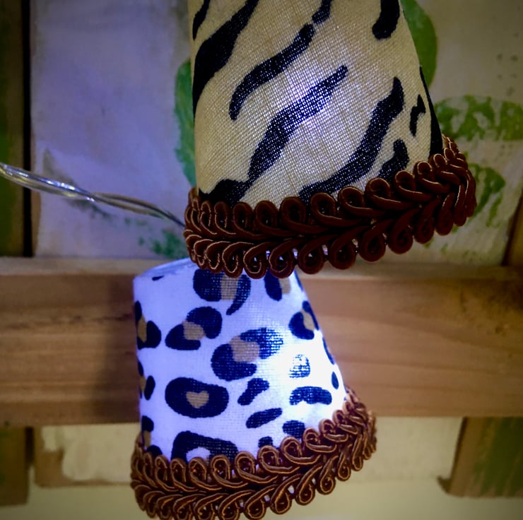 I also do custom lights to order, and can even use your own special fabric, so please contact me if you would like a particular colour combination to fit with your decor, or have a specific fabric in mind. Just remember that these are mini lampshades, so the prints I use have to be mini too!