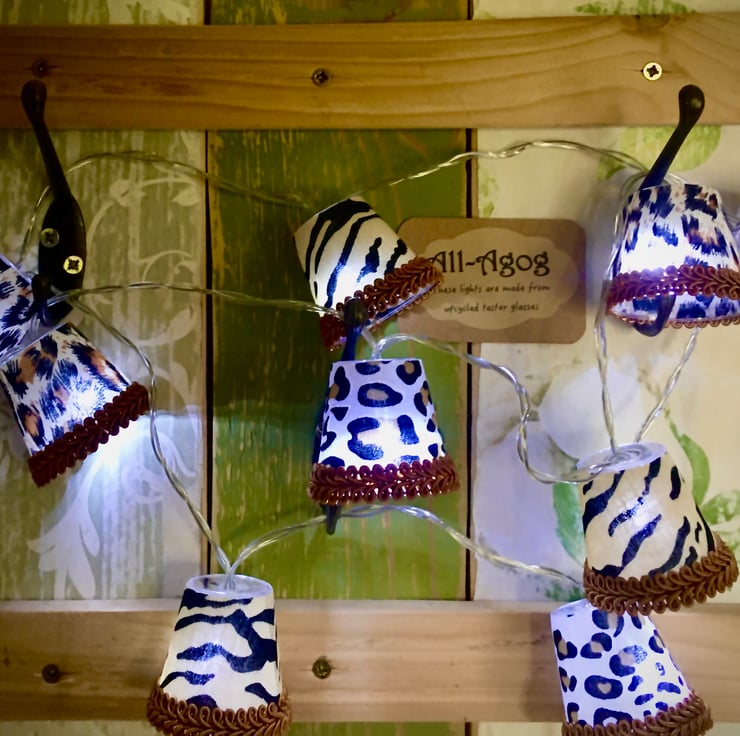 These mini lampshades have been upcycled from used plastic taster glasses.