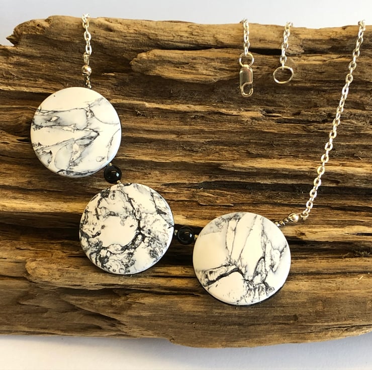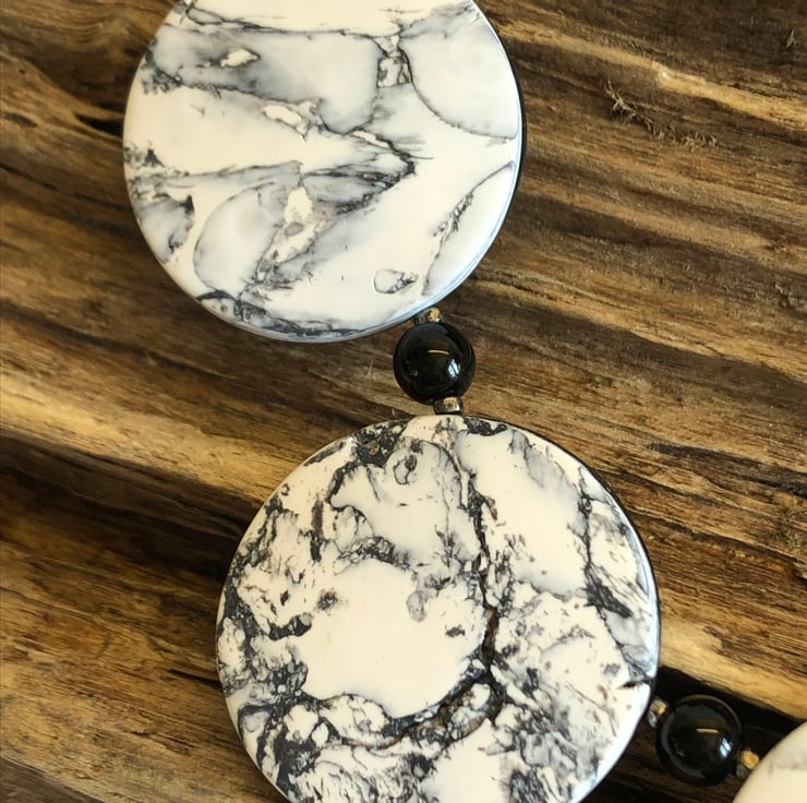 Classic marble effect necklace made from black and white Premo Sculpey polymer clay and black acrylic paint. It is very light weight.