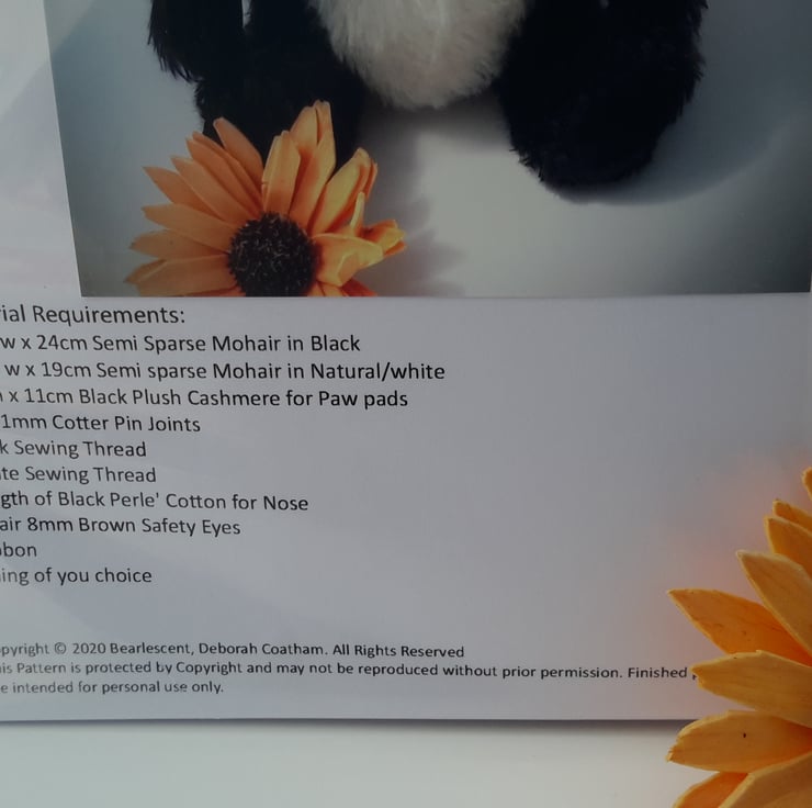 9" Mohair Bear Making Pattern for a charming Panda Bear, designed and created by Bearlescent 2020.