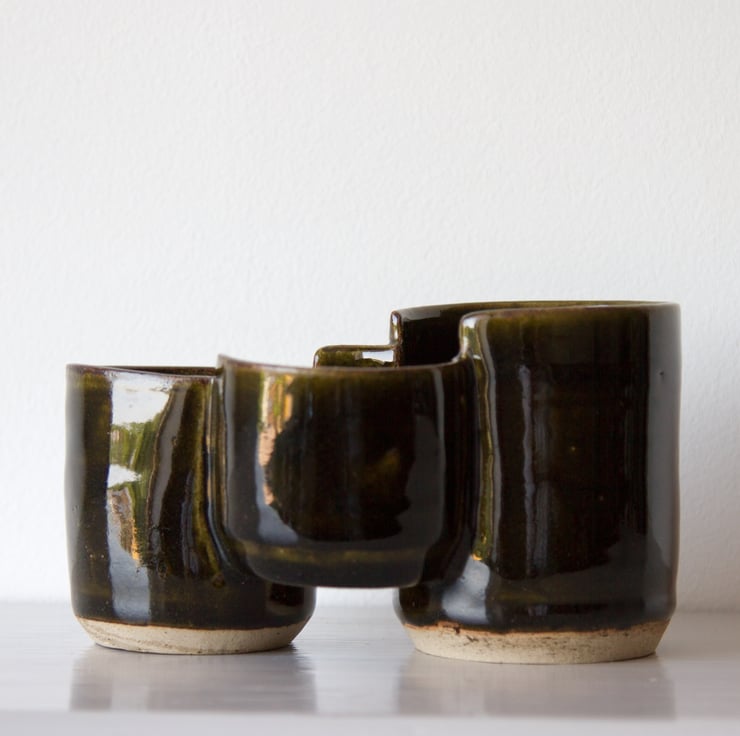 This was made while experimanting with different forms and sticking multiple pieces together. This one allows three small plants to be placed together in an unusual form.