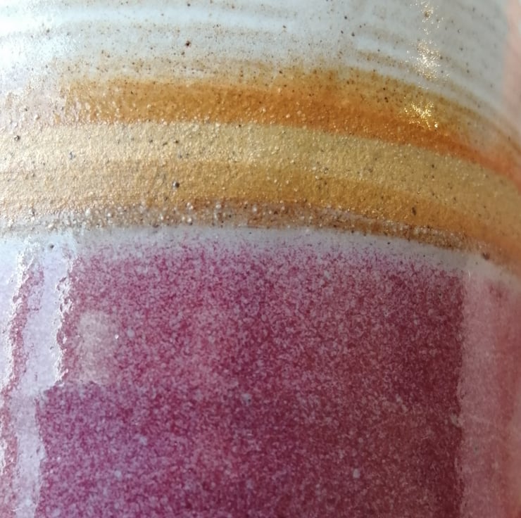 I love the contrast between the exposed clay like the grit crags and the silky feel of the glaze. The lines between them also capture some of the landscape colour contrasts.