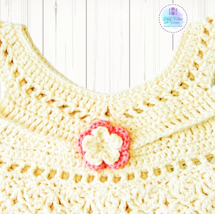 This gorgeous cream and coral baby sun dress has been crocheted using gorgeous Drops lightweight 4 ply 100% cotton yarn.
