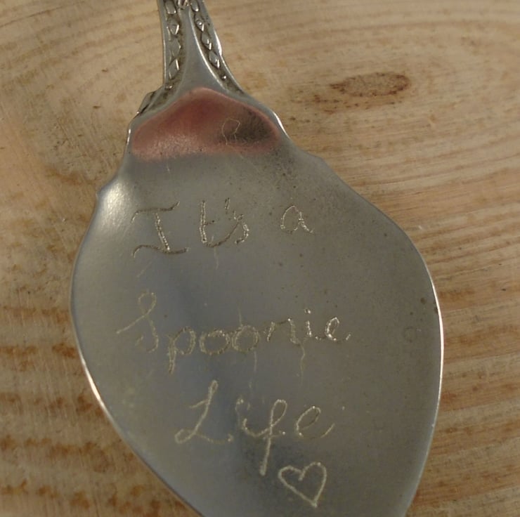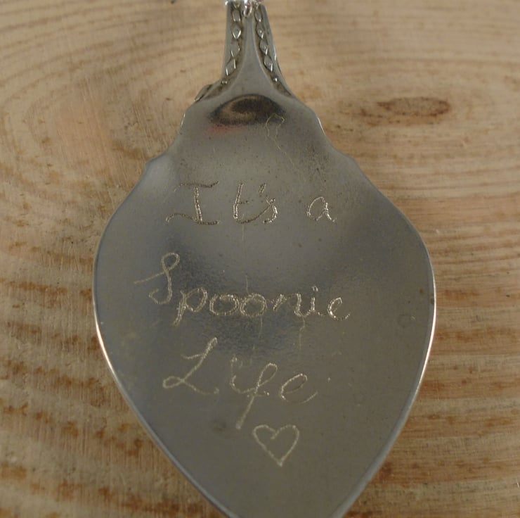 A simple spoon necklace, made especially for the spoonies! The spoon theory relates to people who have chronic illnesses, and goes on the theory of having a limited number of spoons to get through the day, and each task requires a different number of spoons. Once all the spoons have been used, there is no energy left for any other tasks.