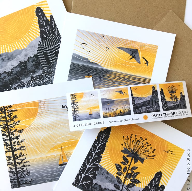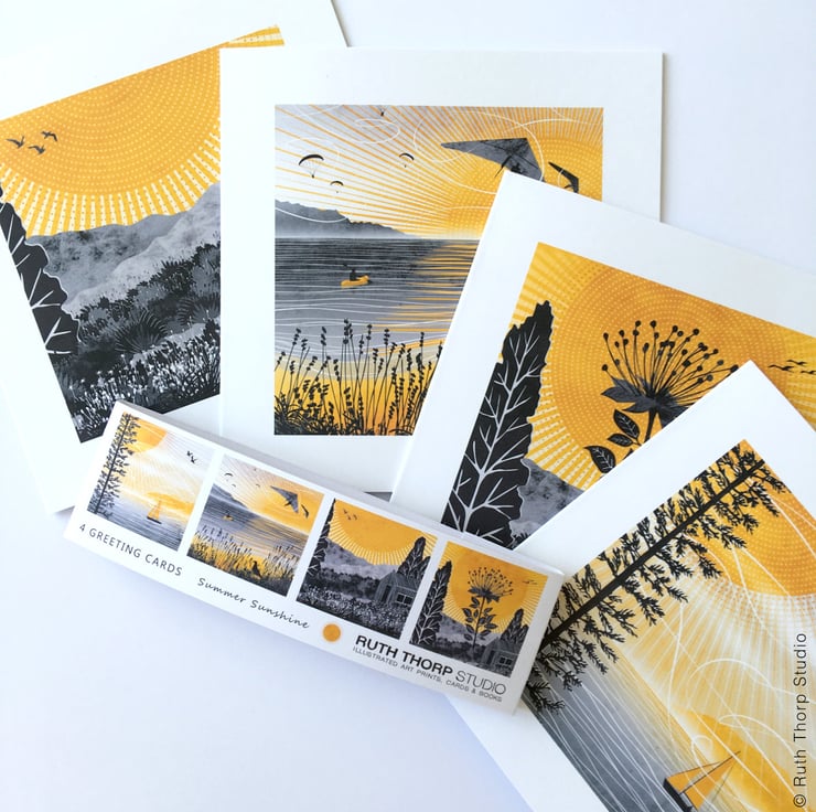 Summer Sunshine Pack of 4 Greeting Cards (135 x 135mm)