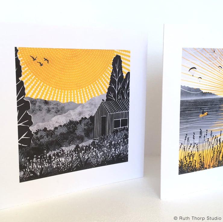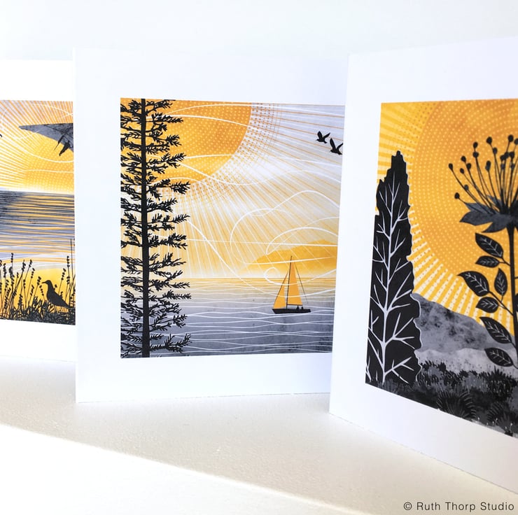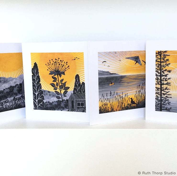 All cards are handmade using card from sustainable sources and are printed using a high quality inkjet printer. The cards and envelopes are presented with outer card sleeve which represents the 4 designs and wrapped in recycled tissue paper.