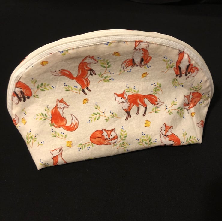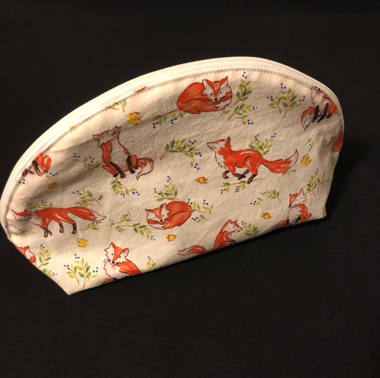 Handmade Fox Zip Bag – Fully Opening Cotton Pouch