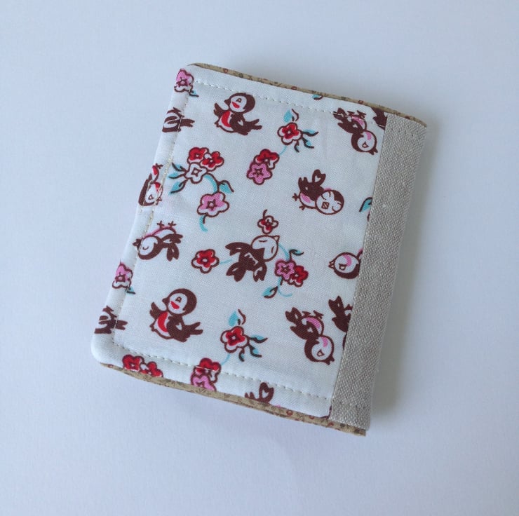 The book measures 12cm by 9cm when closed and is made from cotton and linen.