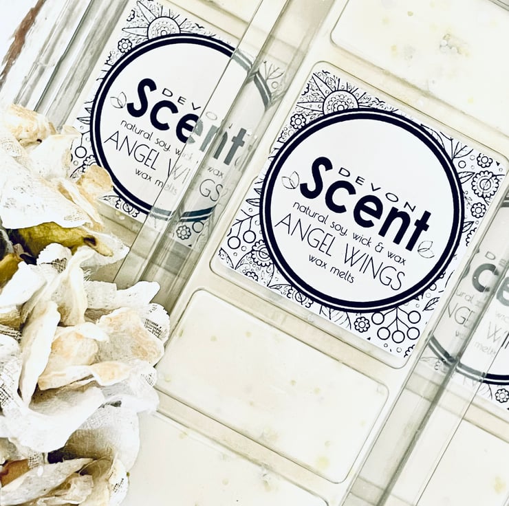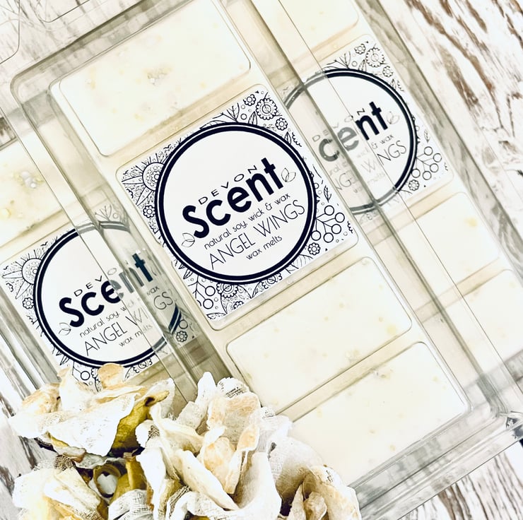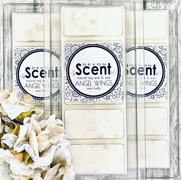 The intoxicating scent from our Angel Wings Snap Bar Wax Melts has a vanilla fragrance with notes of white orchid and sparkling sugar warmed by Jasmin, vanilla Tonka, coconut, vanilla, cocoa bean and creamy sandalwood.