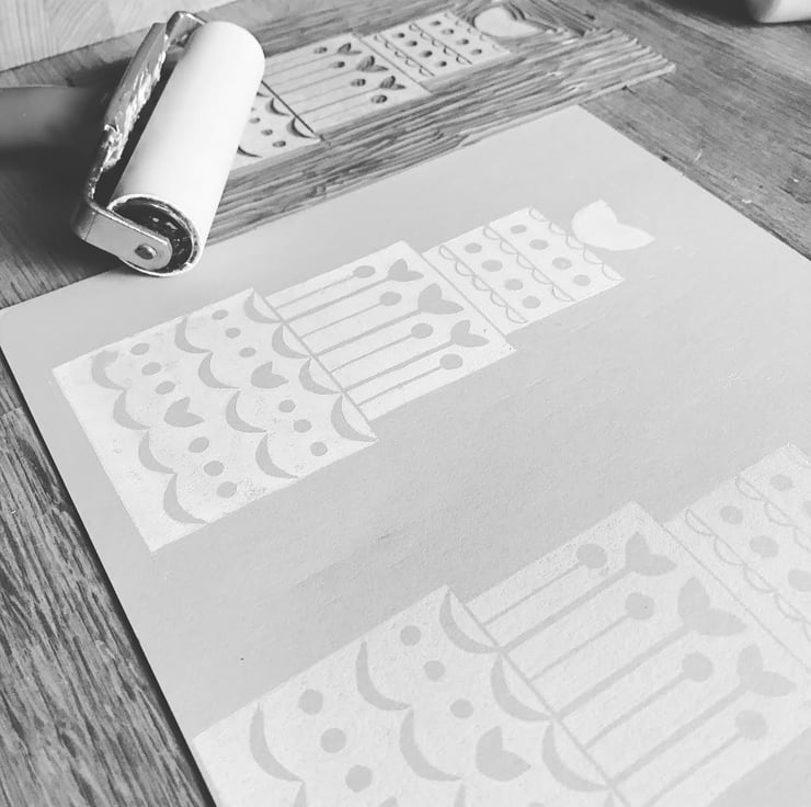All my designs are created in my little studio by the sea and handmade by me. They all started life as a little sketch in my sketchbook, the designs are then cut in lino and printed by me so the patterns have a beautiful, simple block print style that is retained in the final card design.