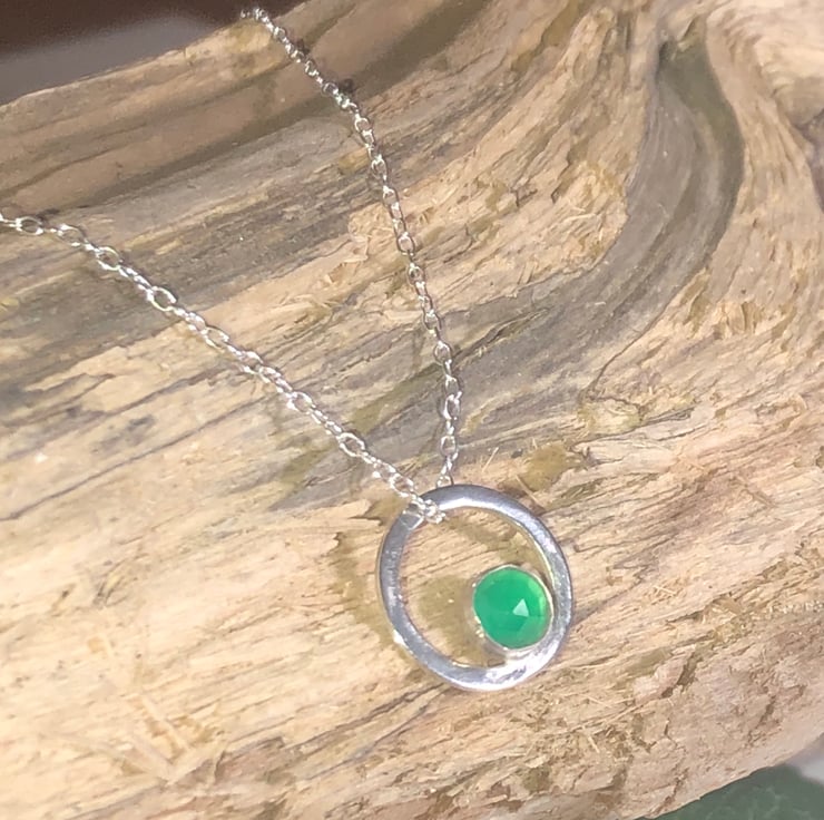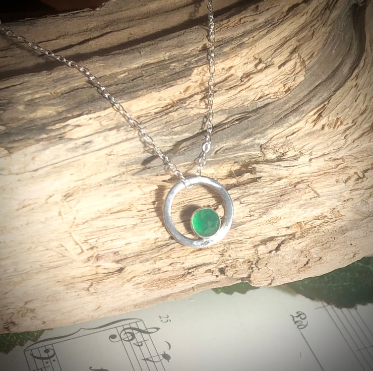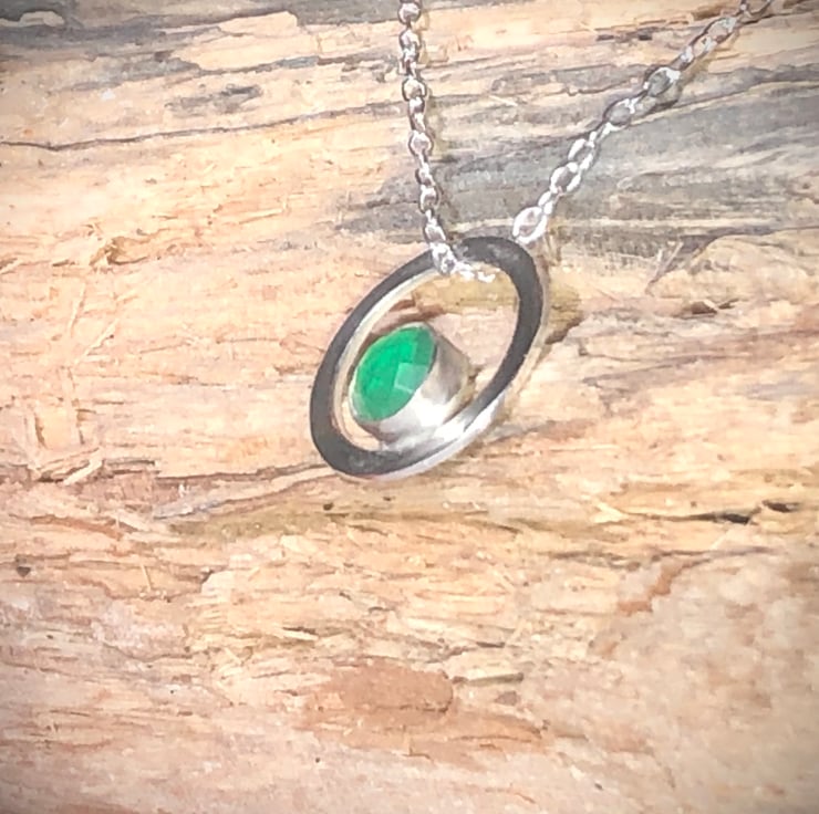 Set in a sterling silver round bezel within a larger sterling Silver flat circle.