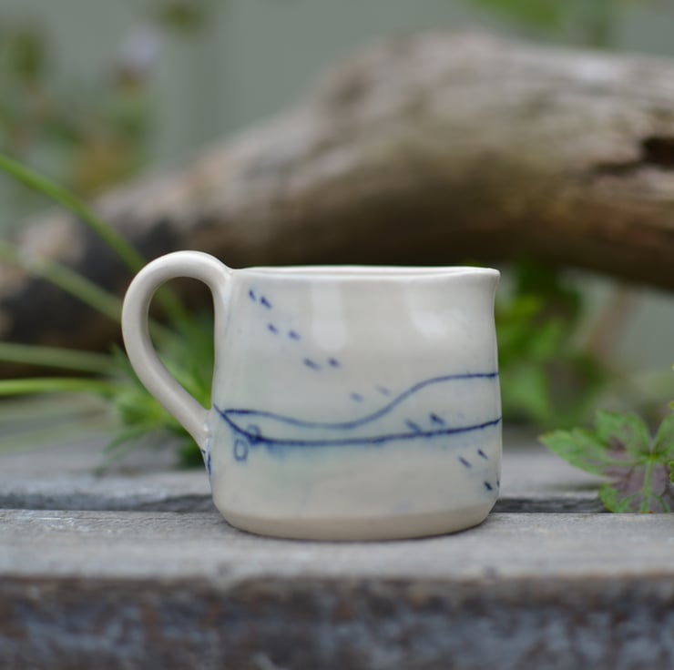 These beautiful handmade tiny milk jugs are made from natural materials using as few resources as possible. They have a simple design that reflects the patterns of the ocean. It forms part of my Horizons collection of handmade pottery.