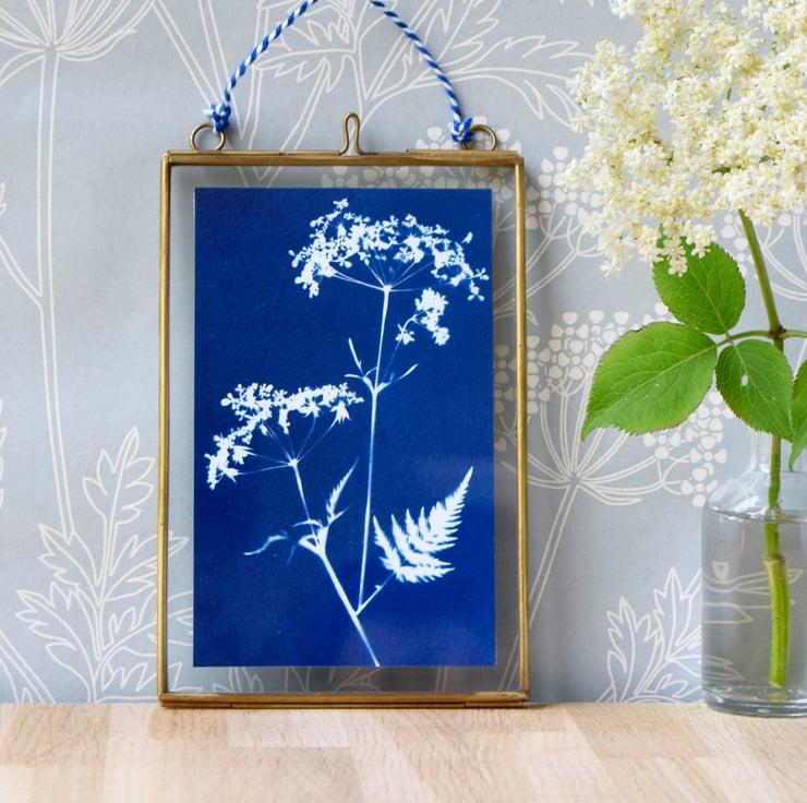The beautiful intricate details of Cow Parsley from the British hedgerows is captured in this unique Cyanotype.