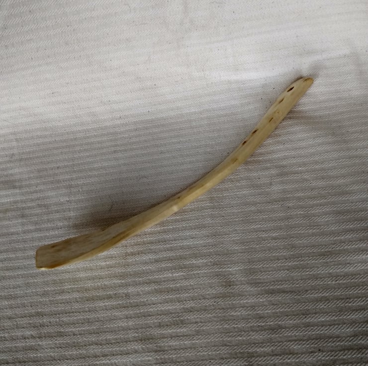 Having wood from my local forest at Epping is privellage and the grain meant I could carve this unusual most useful implement with panache...