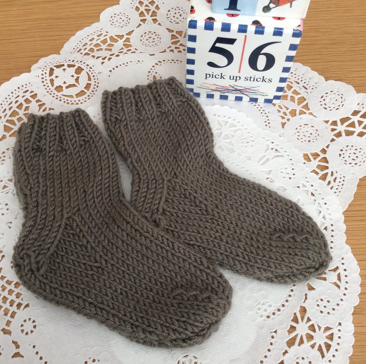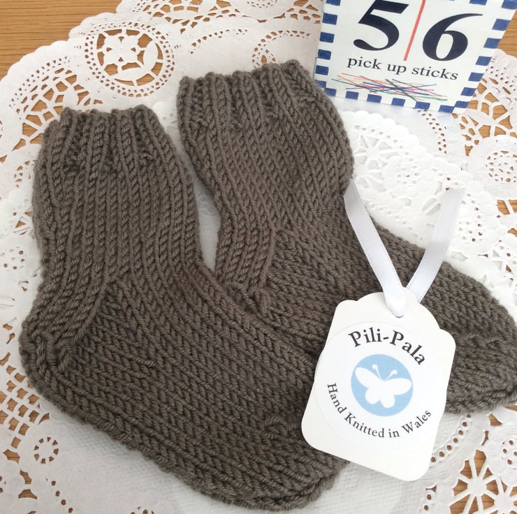 These soft little socks are hand knitted by me. They are knitted in a cashmere blend wool that is soft for babies feet but can also be machine washed at 30 degrees