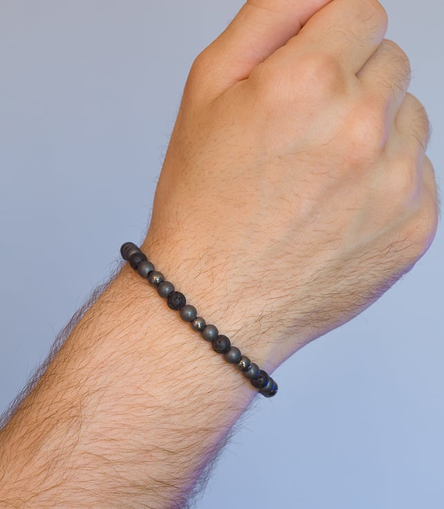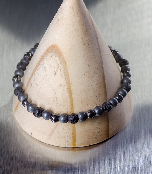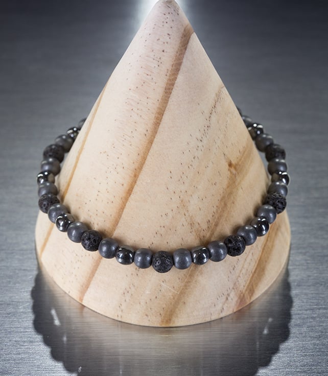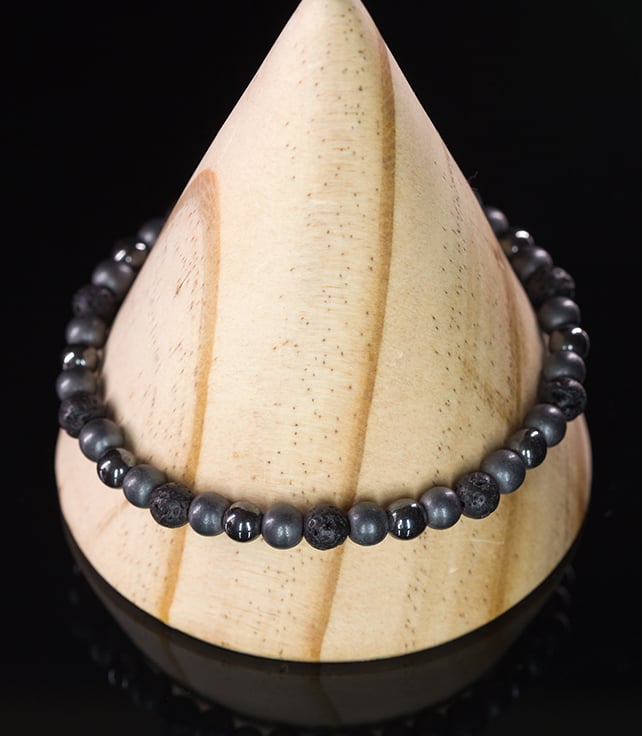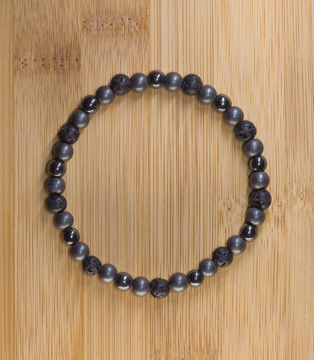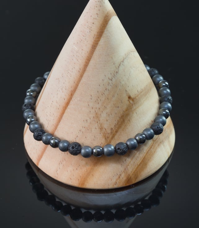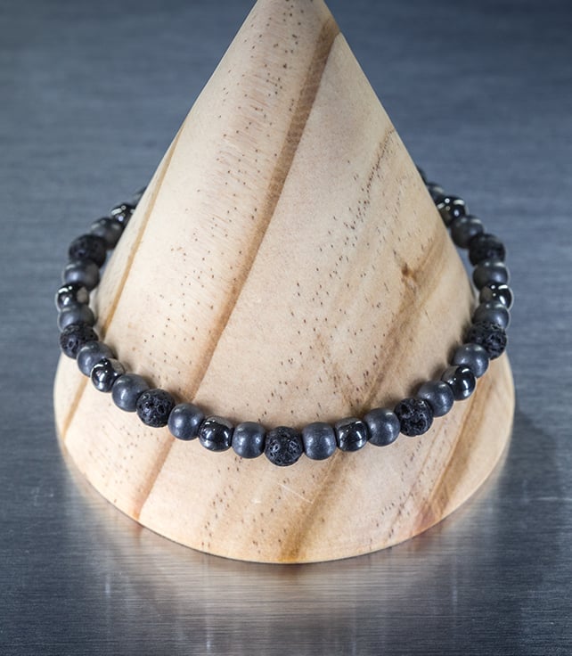 Feels really comfy to wear. Hematite is a great product to use and there are such an abundance of shapes and finishes. The lava beads have a great organic look to them.