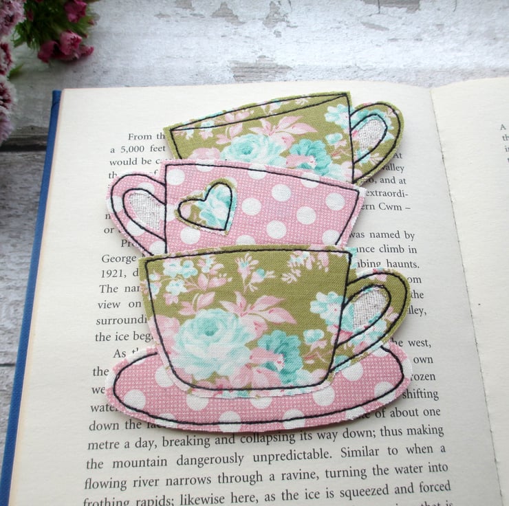 Why not treat yourself, and make reading that much more special with this quirky tea cup stack fabric bookmark.